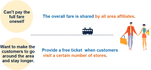 "『Toku-Ticke』 is a service that provides free digital tickets to visitors with the goal of promoting people's movement. The transportation costs for the digital tickets are covered by the entity that wishes to attract customers, making it a 'beneficiary-pays service.' We aim to create a world where people can move for free, contributing to town development that continues to thrive with people, while solving various social issues."